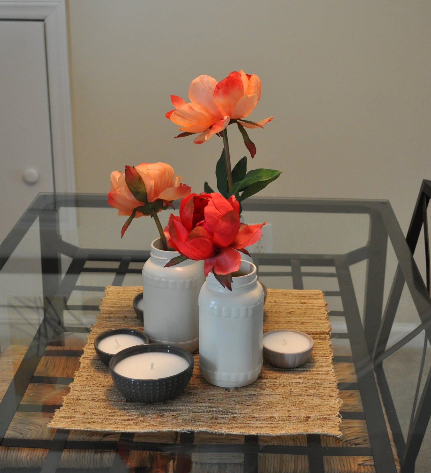 The only things that were purchased directly for this project were the flowers (on clearance at Target for 1.99) {I love Target}, and the placemat (from Target, also very cheap).