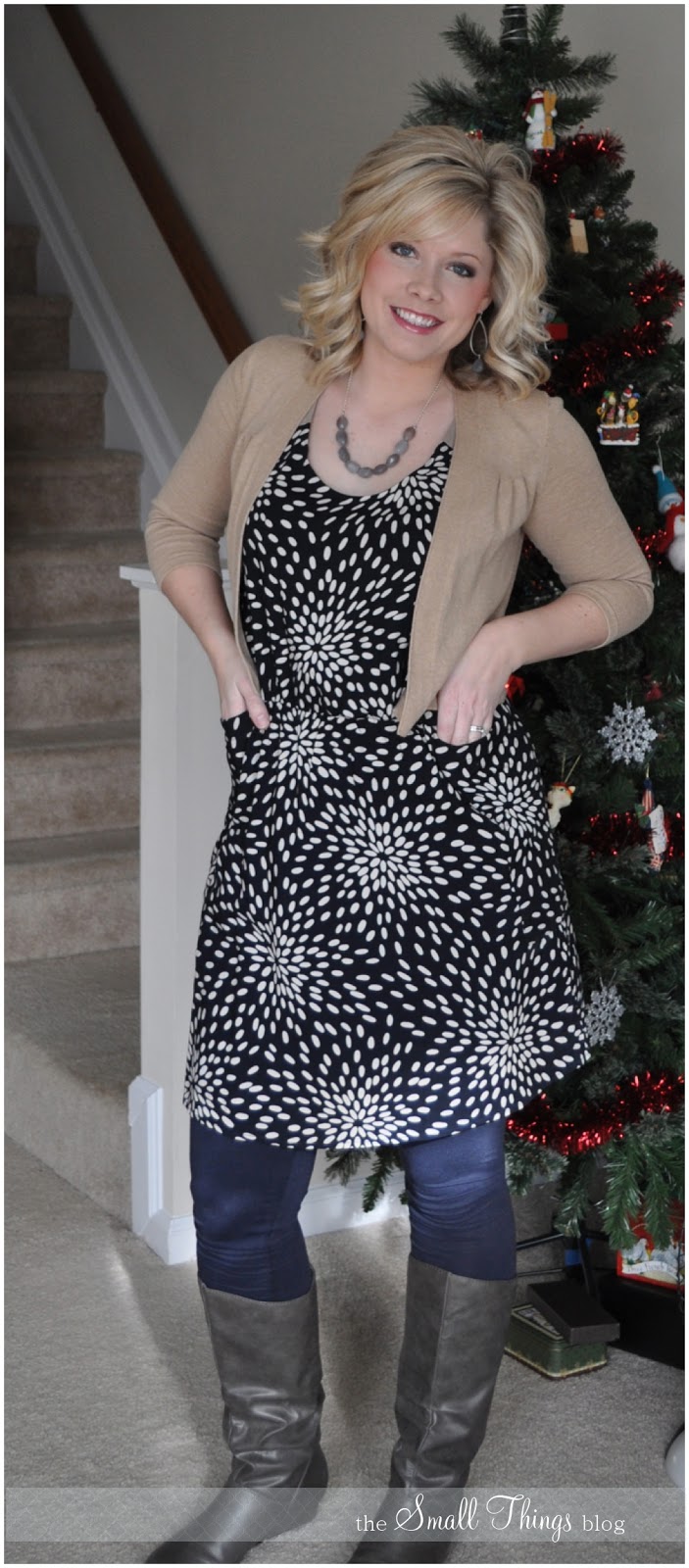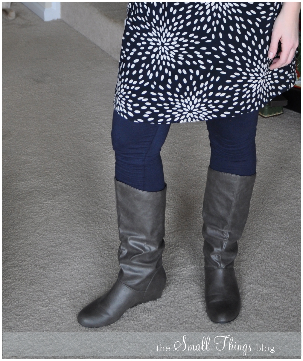But I loved the dress. And I wanted to wear it with leggings in the winter. So I tracked down some navy blue leggings from H&M and threw this outfit together.