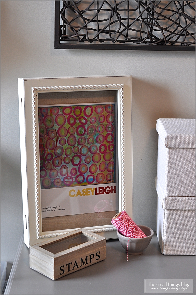 I decided to put it in this shadow box as a different way to display a print. It adds just enough color and pattern to that corner of my desk.