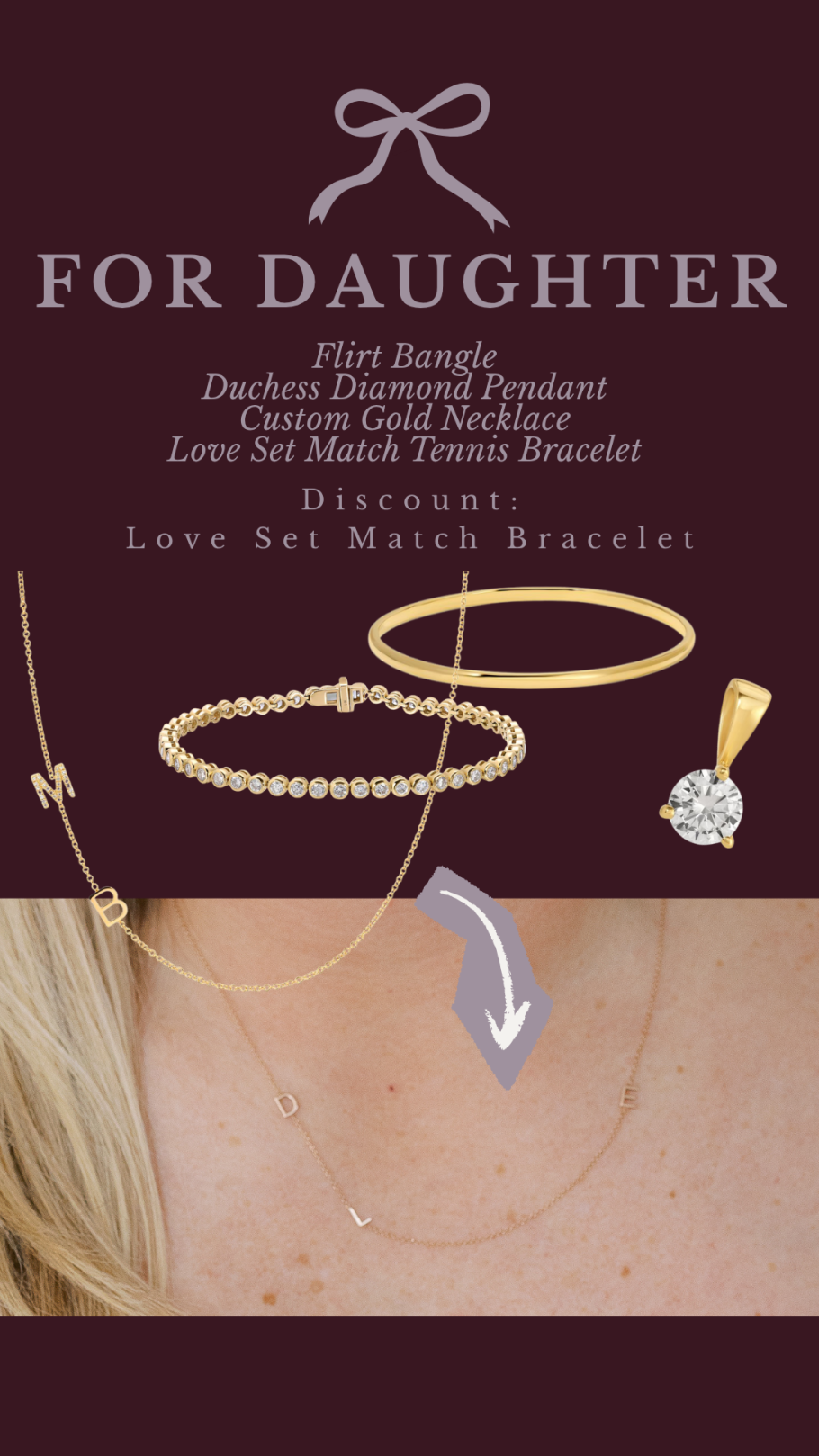 Flirt Bangle // Dutchess Diamond Pendant // Custom Gold Necklace // (20% off) Love Set Match Tennis Bracelet