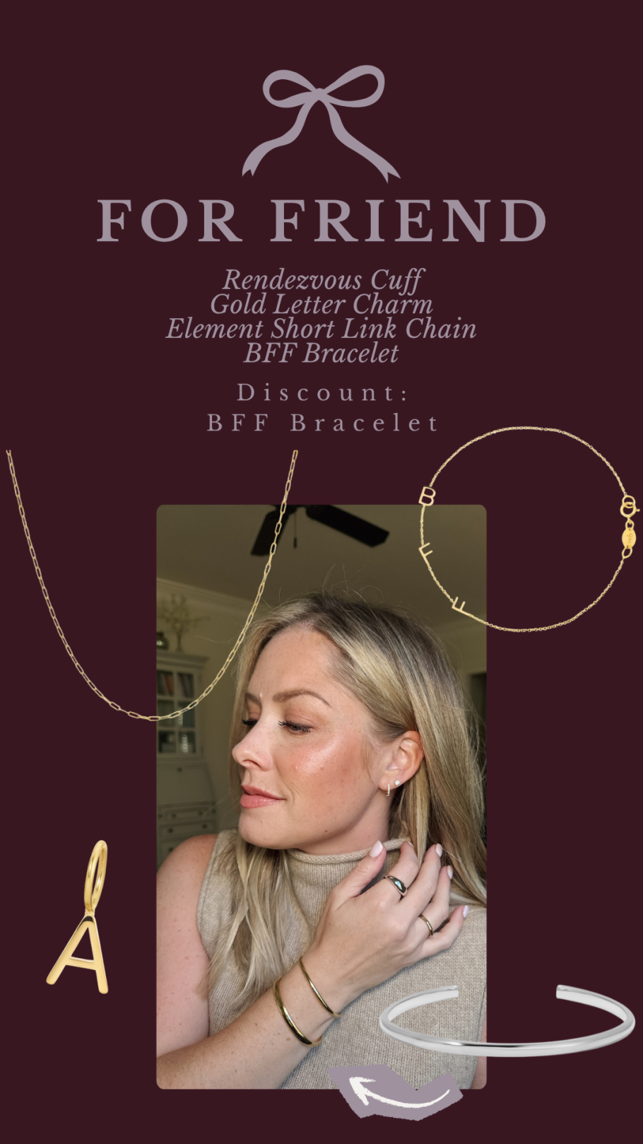 Rendezvous Cuff // Gold Letter Charm // Element Short Link Chain // (20% off) BFF Bracelet