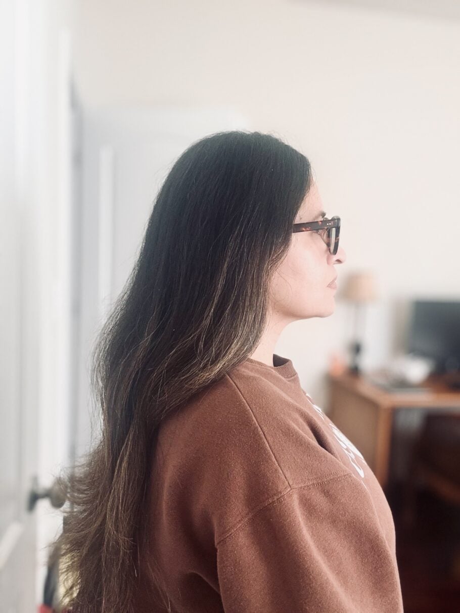 I absolutely love the color of your hair! The brown is so pretty! Savor the shine and silky look to your hair–it’s hard to get that as a blonde!