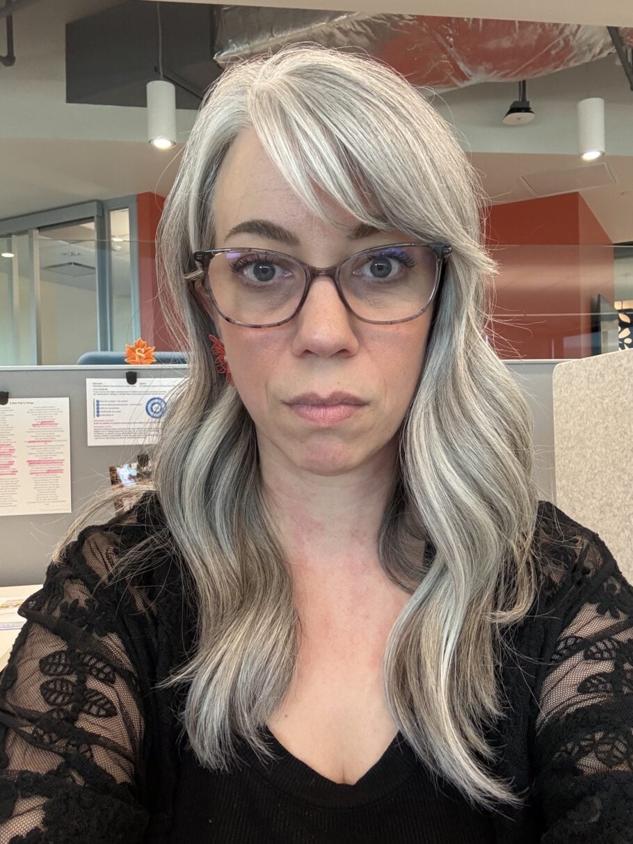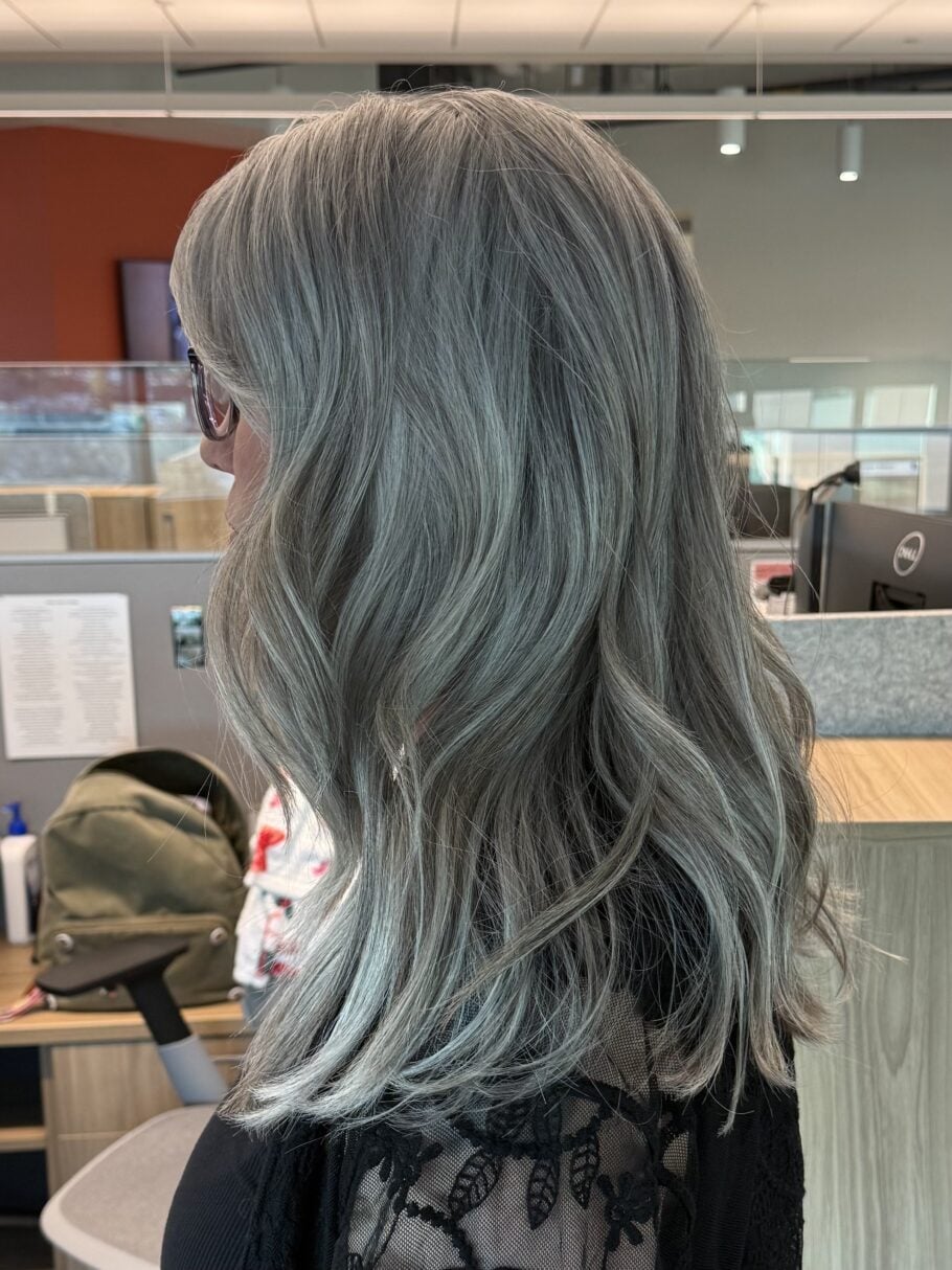 I hope my hair looks exactly like yours once I begin to go gray! Not only is the haircut perfect for you, but the way you have it styled looks beautiful as well! Gray hair can be on the dry side, but I know you’re using a lot of great products right now, and your hair looks healthy and shiny!