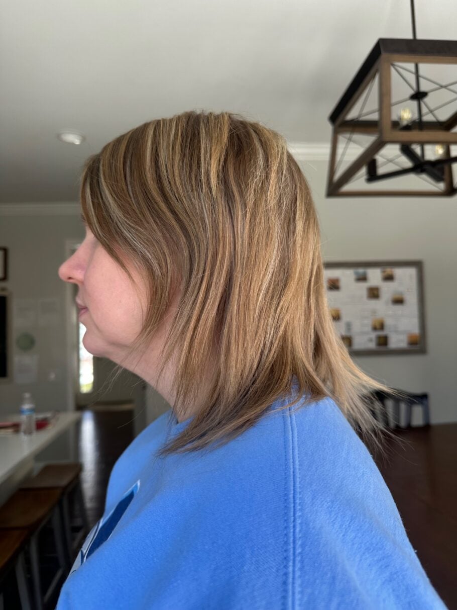 I bet if you tried to scale back on heat, you’d find those top/side sections of your hair would grow more easily, and you’ll love having that extra length to contribute to your hair’s overall thickness!